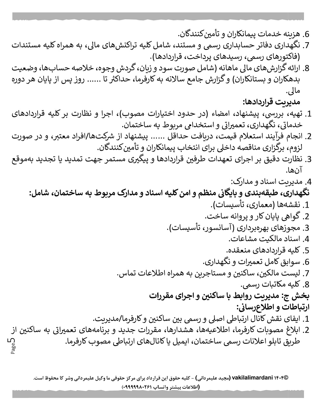 این پیوست، نه تنها برای مدیران ساختمان، بلکه برای مالکین، هیئت مدیرهها و تمامی ساکنین، منبعی ارزشمند برای شناخت حقوق و تکالیف است.