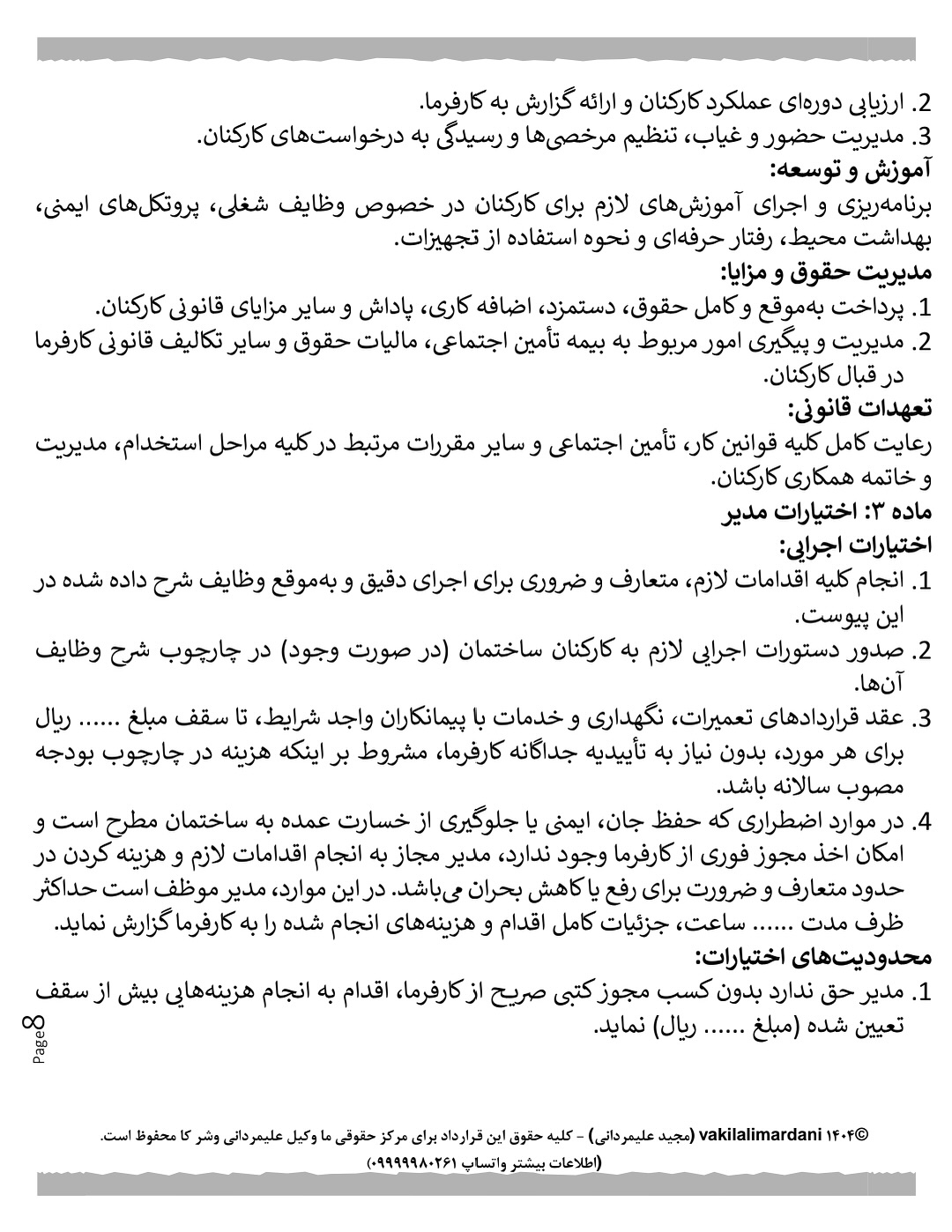 ✅ الزامات حقوقی و مسئولیتهای مدیر و کارفرما (مالکین/هیئت مدیره)