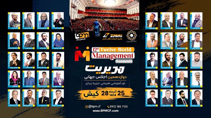 ⁨ دوازدهمین اجلاس جهانی مدیریت در جزیره زیبای کیش ۲۵ تا ۲۸ آذر ماه ۱۴۰۴ با حضور اساتید و سخنرانان برتر حوزه کسب‌و‌کار فرصتی برای هم‌افزایی، شبکه‌سازی و انتقال تجربه ‪@safaeimehdi‪@imanmasdari.ir‪@shahram.vaez‪@dr.mahdirouhani‪@drmohammadian‪@dr_baghban‪@ahad.azimzadeh‪@haj_rahim_ghorbani‪@aliasgharkeyhani‪@hamidemami.ir‪@dr.guive.sharifi‪@drsaniyeh‪@mehrsasharoleslam‪@s.a.banihashemi.k‪@dr.tasojiazar‪@behrouzforoutanoriginal‪@masoudsarami_ir‪@alijabbarzadehh‪@samadsolimanzadeh‪@jalal_rahimi_m‪@andy_preston_sales_speaker‪@frank.furness‪@iraj_hesaby‪@rasoul_koohpayehzadeh‪@kouroshsobati‪@rezaazmoudeh‪@mkz_1__‪@shahram.vaez‪@shimavafaei_majazi‬@rezaazmoudeh @mkz_1__ @shahram.vaez @shimavafaei_majazi @bam.academy_ #اجلاس_جهانی_مدیریت #کیش #مدیریت #سمینار #شبکه_سازی #بازارپژوهان_مبتکر